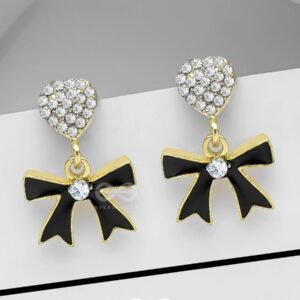 Elegant Black Bow and Heart Stud Earrings – Sparkling Rhinestone Accents for Women