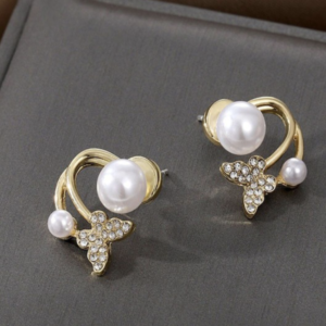 Crystal Butterfly Pearl Stud Earrings – Elegant Gold-Tone Statement Earrings for Women & Girls