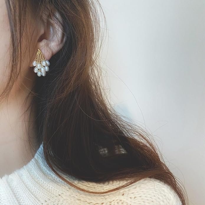 Add a touch of sophistication to your ensemble with these elegant pearl cluster earrings, perfect for complementing both casual and formal outfits. Designed with high-quality freshwater pearls in an exquisite cluster arrangement, these earrings offer a luxurious yet delicate look. The gold-plated finish enhances their elegance, making them a must-have accessory for any jewelry collection. Lightweight and versatile, these earrings are suitable for daily wear as well as special occasions, like weddings or parties.